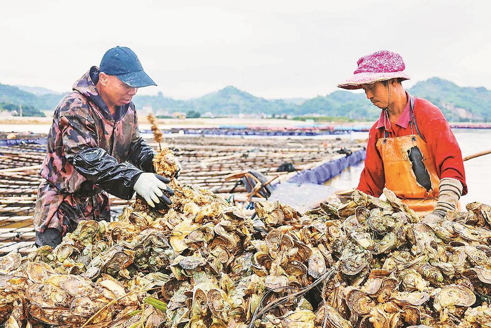 近日,连江县琯头镇定安村的白蚝养殖区,工人正打包白蚝,一派繁忙景象。