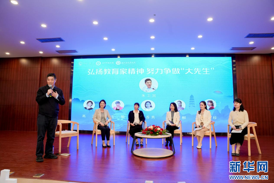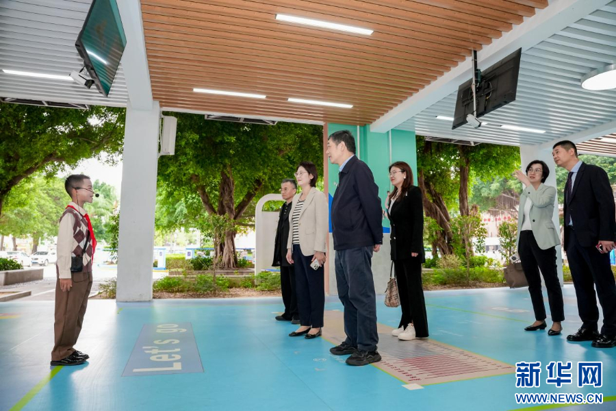 活动期间,中国教育学会副会长朱卫国(中)等教育专家走访校园。新华网发(承办方供图)