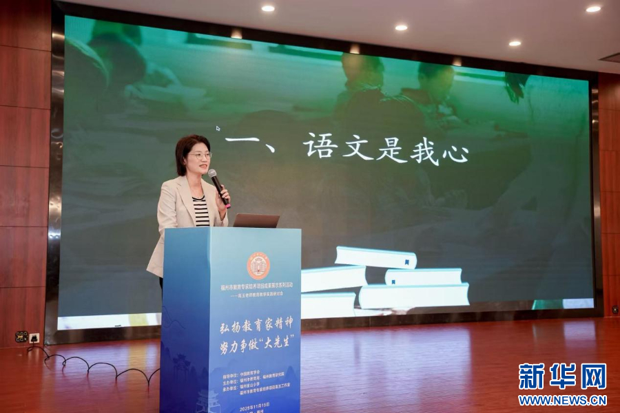 福州金山小学校长高玉分享“活力语文”的思考与实践。新华网发(承办方供图)