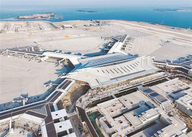 昨日,厦门翔安国际机场航站楼六条指廊屋面的分布式光伏发电系统正式并网。(记者 王火炎 摄)