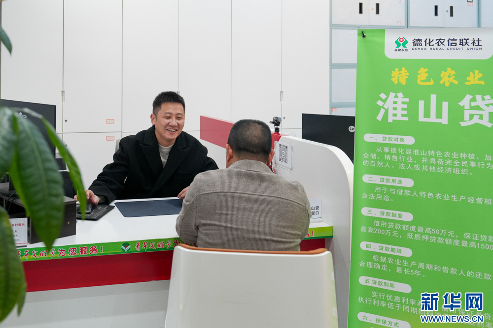 2025年,德化农信联社设立“淮山主题银行”,推出“淮山贷”,开通绿色通道,为农户提供特色农业信贷支持。2026年1月5日,在服务窗口,金融助理员在对接农户办理“淮山贷”需求。新华网 肖和勇 摄