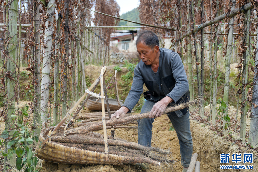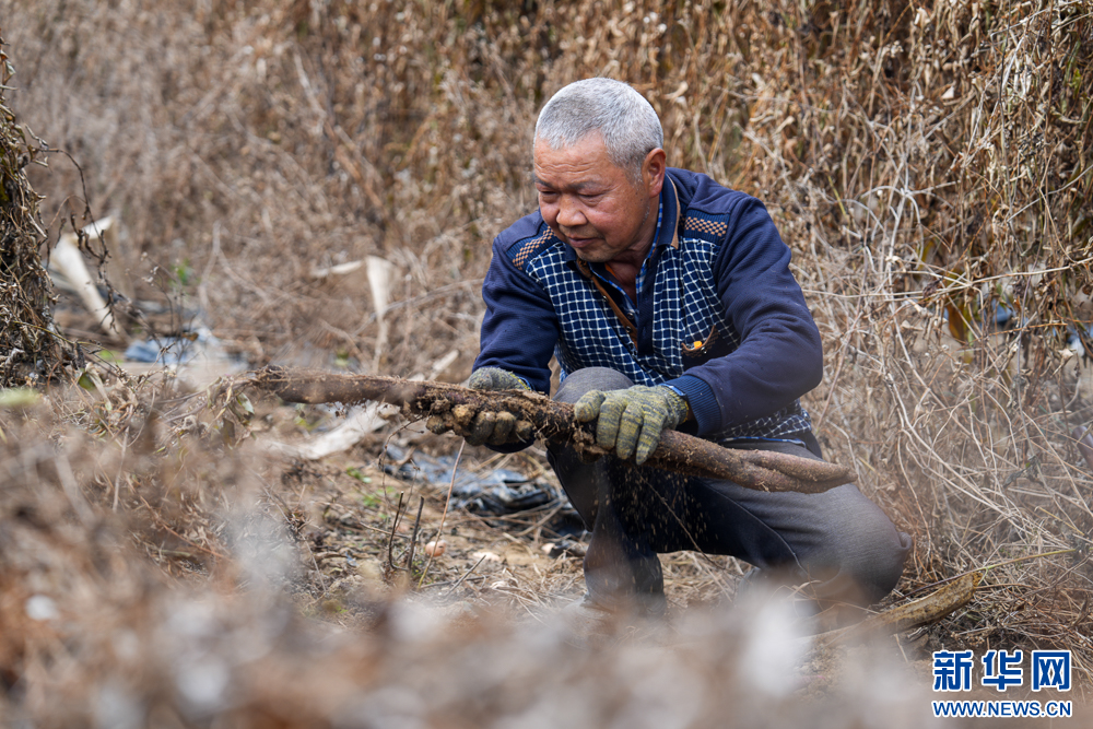 1月5日,德化县龙浔镇英山村,农户在采挖淮山。新华网 肖和勇 摄