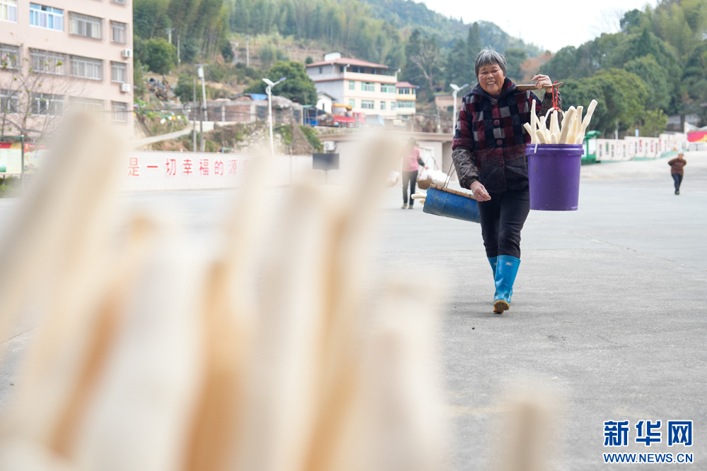 1月5日,德化县英山珍贵淮山农民专业合作社,农户将淮山带到收购点出售。新华网 肖和勇 摄