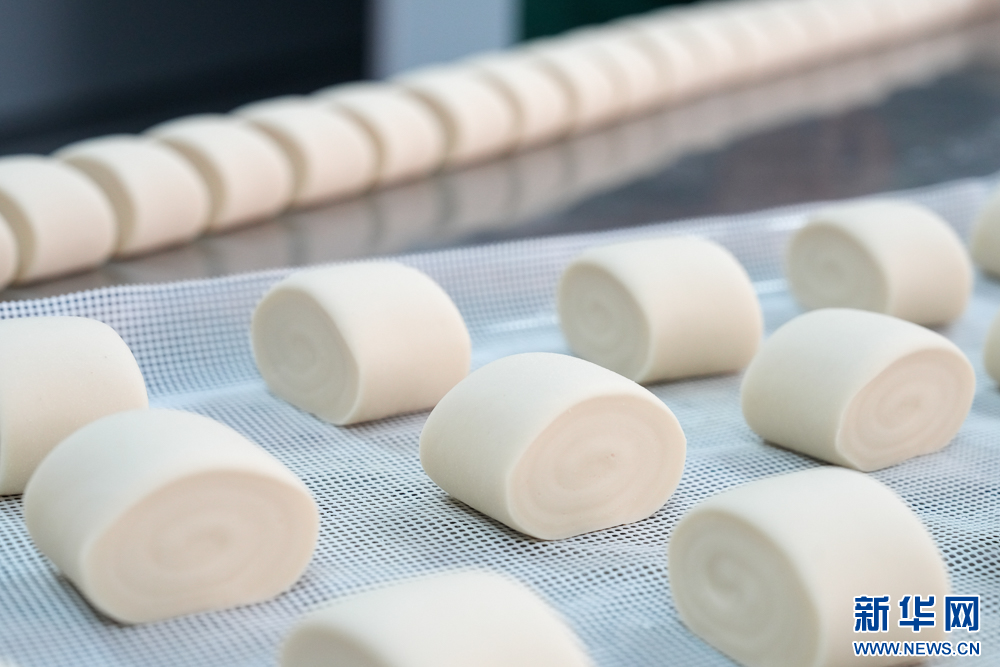这是淮山做成的馒头。“金融活水”助力当地企业推出淮山特色美食,提升产品附加值(1月5日摄)。新华网 肖和勇 摄