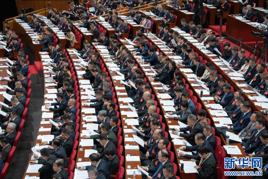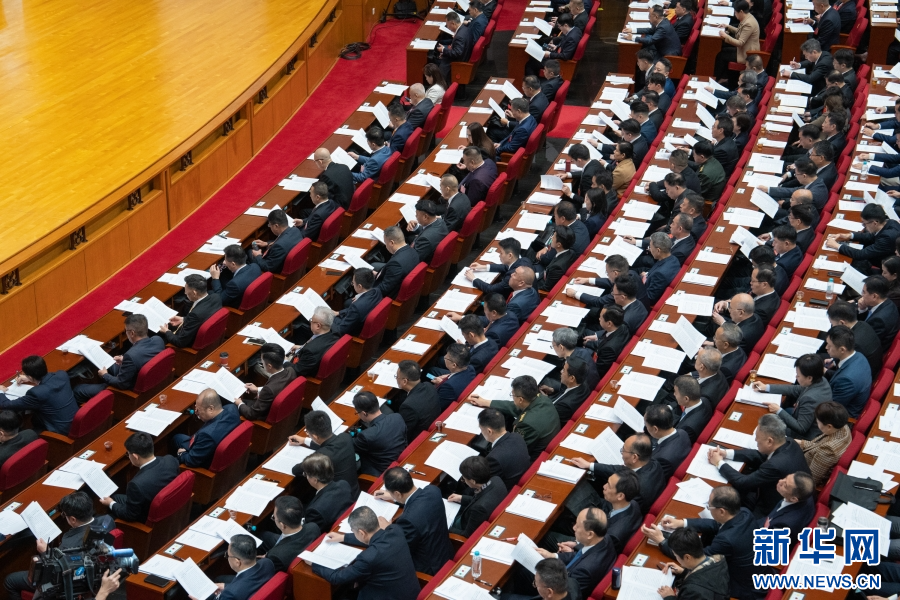 委员们听取和审议报告。新华网 蒋巧玲 摄