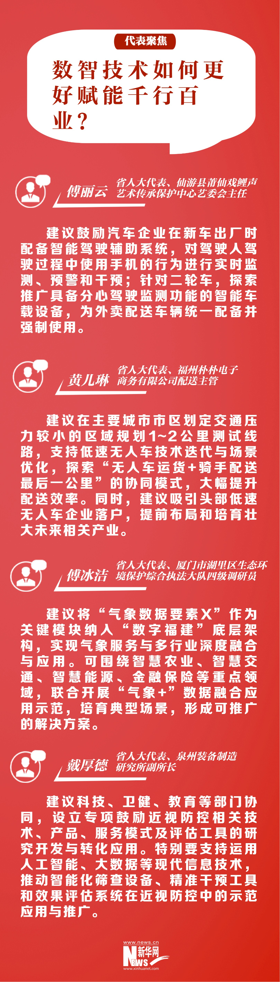 新华网福州1月30日电(刘丰)2025年,福建数字经济增加值预计达3.4万亿元。省政府工作报告明确,今年福建要加快数智全面赋能,深入实施“数据要素×”和“人工智能+”行动。数智技术如何更好赋能千行百业?福建省两会期间,省人大代表们畅想智慧生活新图景。