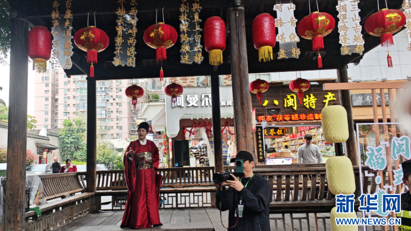 三坊七巷风雨廊内,闽剧与建瓯唱曲子同声相应,双城戏曲同台共鸣。新华网 刘丰 摄