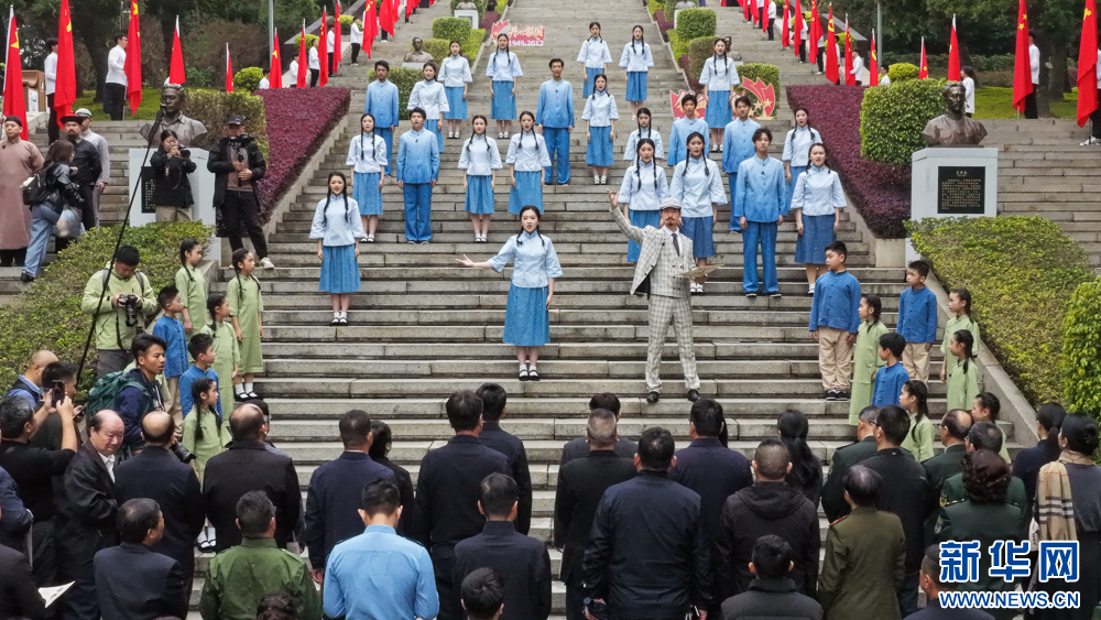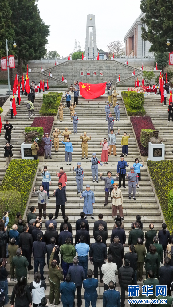 3月29日,演员在“铁血铸魂”篇章中演唱红色主题歌曲(无人机照片)。新华网 肖和勇 摄