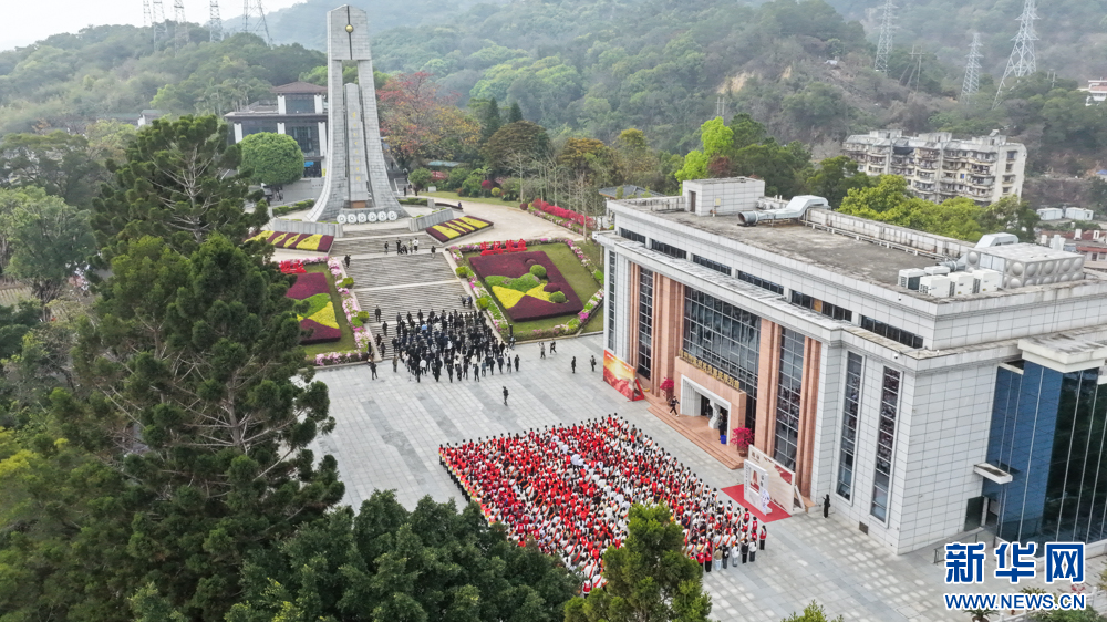 3月29日,人们在福州市革命英烈纪念园敬献鲜花,缅怀英烈(无人机照片)。新华网 肖和勇 摄