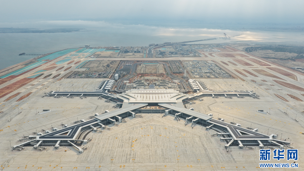 这是建设中的厦门翔安国际机场。画面由近及远为:交通中心及酒店、T1航站楼、指廊、停机坪等(3月31日摄,无人机照片)。新华网 肖和勇 摄