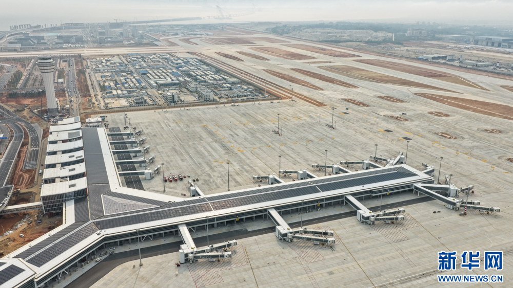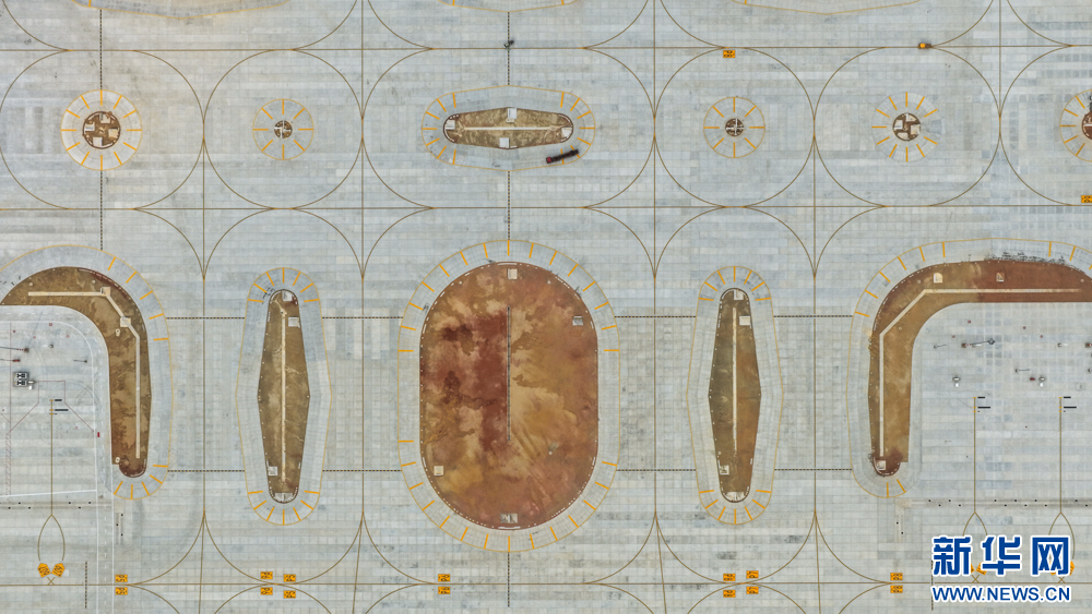 这是机场指廊、停机坪与北1跑道(3月31日摄,无人机照片)。新华网 肖和勇 摄