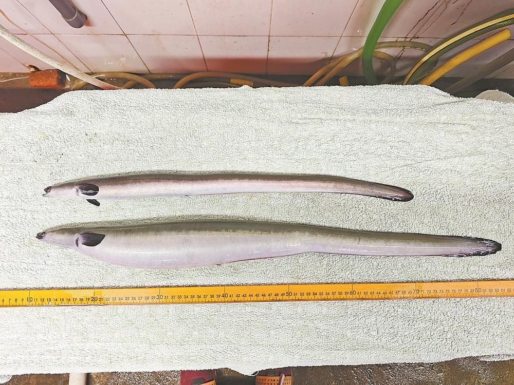 待产的雌性鳗鲡(下)和雄性鳗鲡的对比图