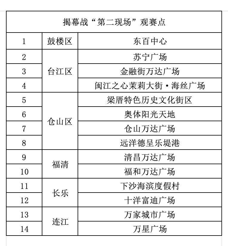 16日,“闽超”福州赛区举行新闻通气会,福州市体育局、福州市文旅局等部门介绍相关情况。揭幕战将于19日19:00开始,全市14个“第二现场”观赛点同步开启直播,包括单场次容纳人数最多的闽江之心观赛点,及福州市上下杭历史文化街区观赛点、福州新区下沙海滨度假村观赛点等。福州赛区主办方还特邀劳模、无偿献血奉献奖终身荣誉奖获得者、优秀教师、“最美退役军人”等各行业优秀代表200余人现场观赛。