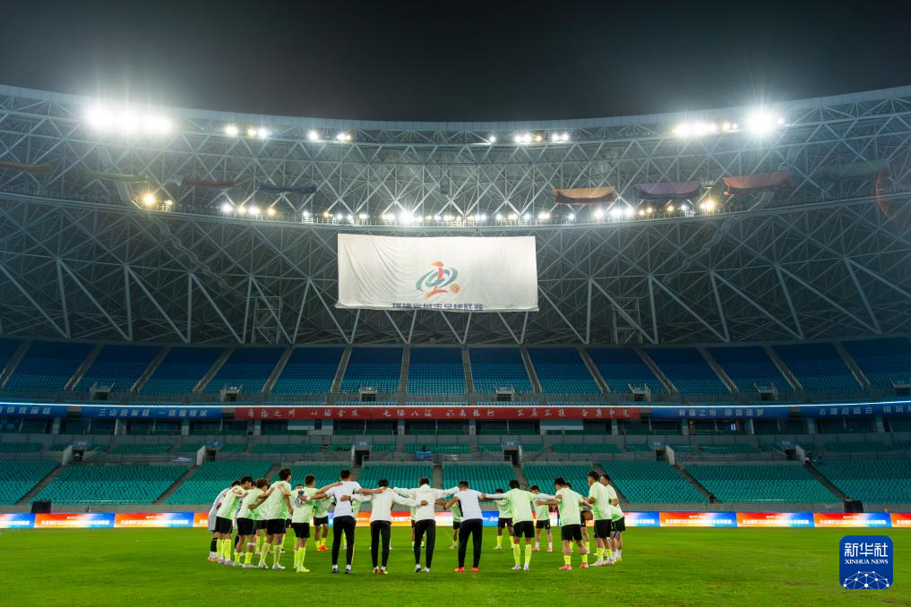 4月18日,福州队球员在训练时集结。新华社记者 魏培全 摄