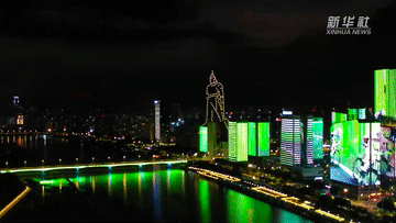 为庆祝第44届世界遗产大会即将在福州召开,福州15日晚开启灯光秀和以“有福之州迎世遗”为主题的无人机表演。