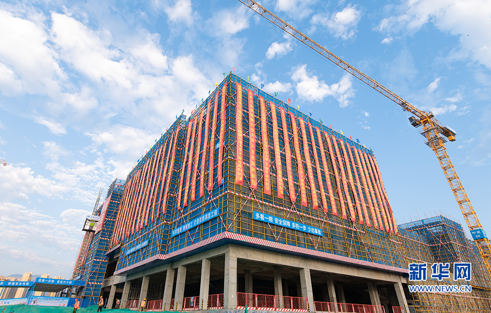 11月19日,福耀科技大学(筹)明德堂及行政楼主体结构封顶现场。新华网发(陈新星 倪跃嘉 摄)